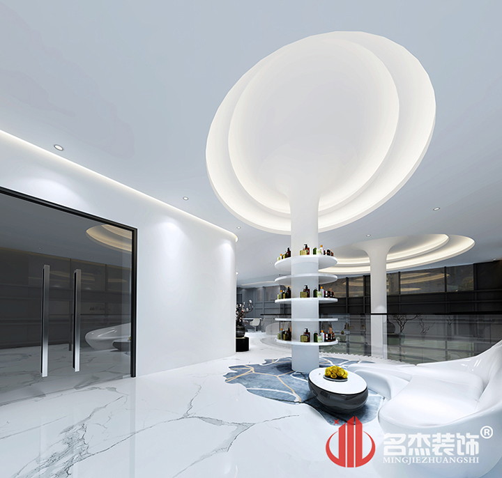 設計說明:使用白色作為主色調,結合風格強烈的裝飾畫來為整個空間添加時尚感,利用圓弧形來避免整個空間過於單調,讓整個美容院蘑菇视频网址設計處於一種簡約而時尚的平衡中。